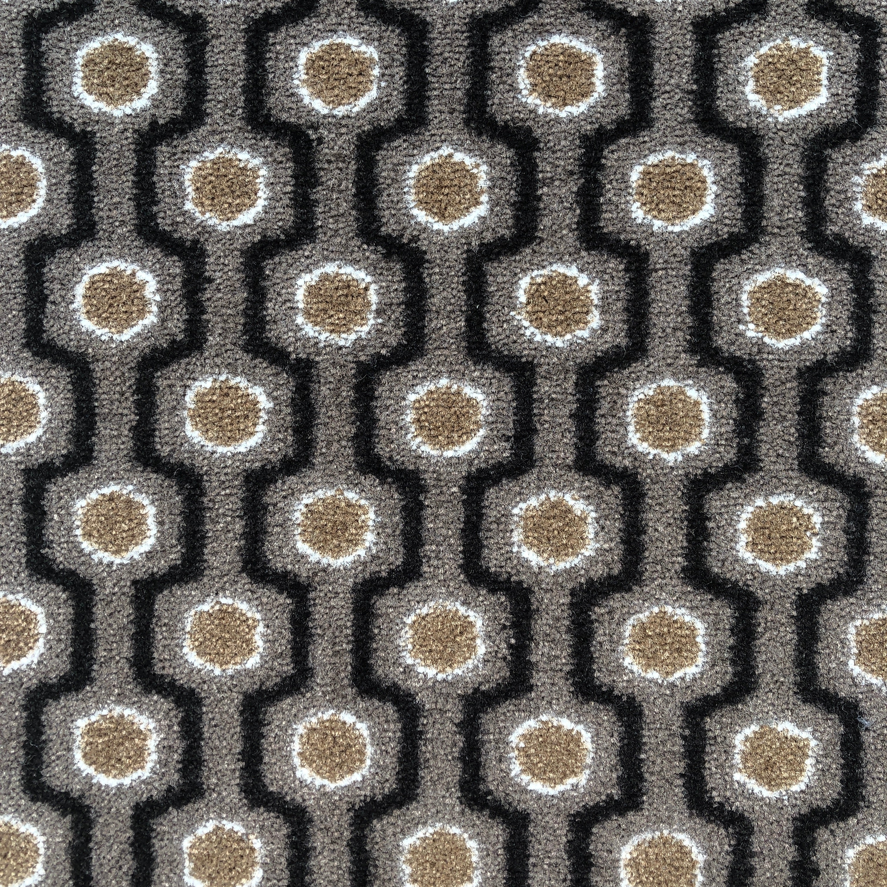 Cette moquette à motif des années 70, aux teintes taupes et fabriquée en fibre de polyamide recyclé, allie avec brio charme rétro et durabilité. Son design audacieux et coloré évoque l'esprit festif de cette époque, apportant une touche de caractère à votre espace tout en offrant le confort d'une moquette, idéale pour créer une ambiance moderne et chaleureuse.