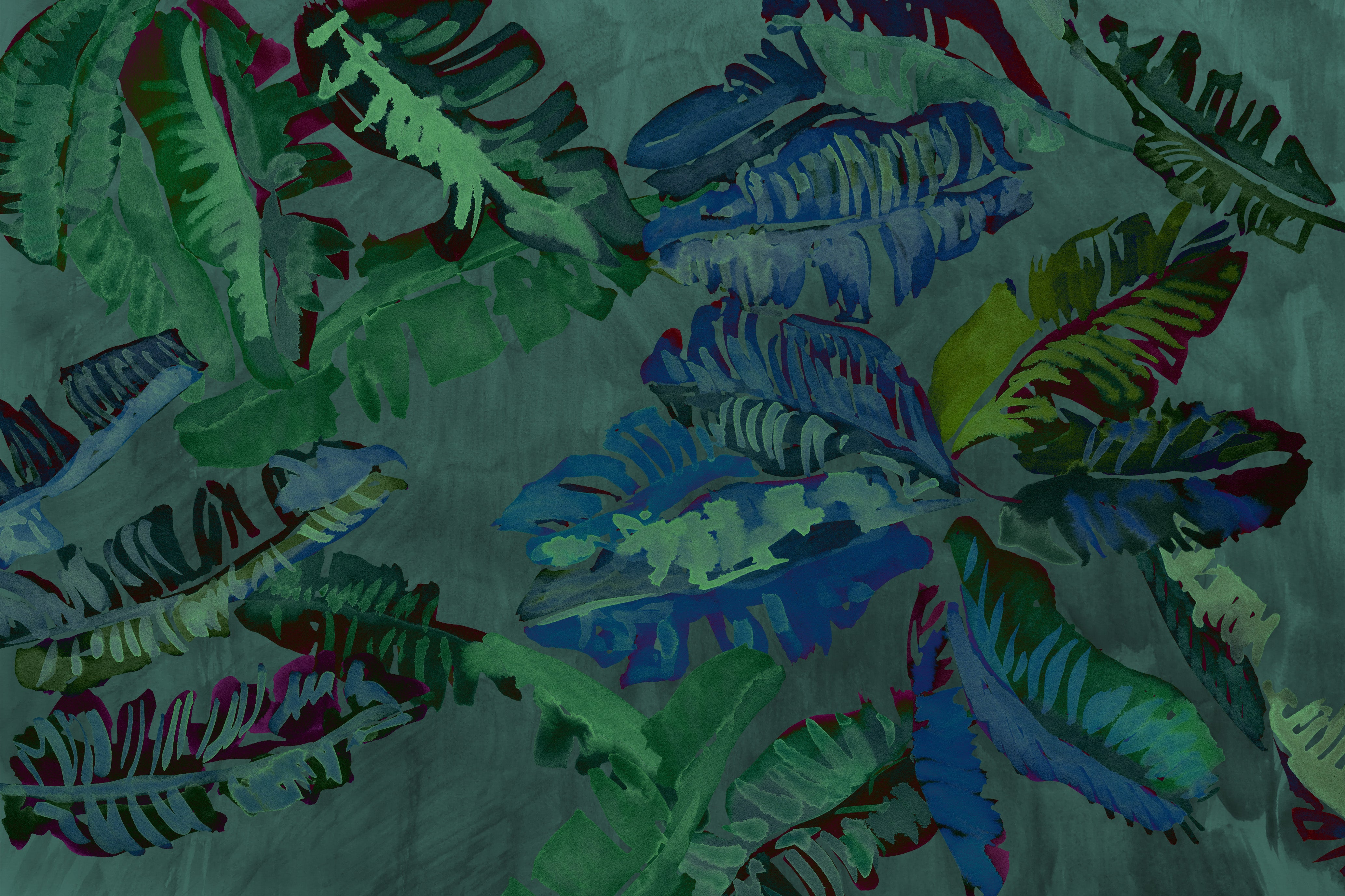 Le tapis motif Palmes Noctambules est une composition fascinante qui évoque la beauté mystérieuse de la nature la nuit. De grandes feuilles de palmiers, teintées de nuances profondes de bleu, de vert et de touches subtiles de violet, se déploient sur un fond sombre et vaporeux. Chaque feuille semble dansante, capturant l'essence d'une jungle éclairée par une lumière douce et énigmatique.